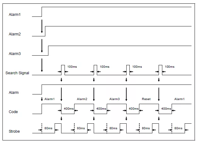 若報警有多個(支持100個報警輸出),監控時序如下: