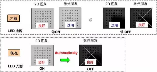 此功能支持在3DL視覺程序中,在捕獲2D圖象和激光照射圖象時,同步控制LED光源的ON/OFF。通過此功能,可以獲得適當的外部光線環(huán)境,提升整個視覺系統的能力。